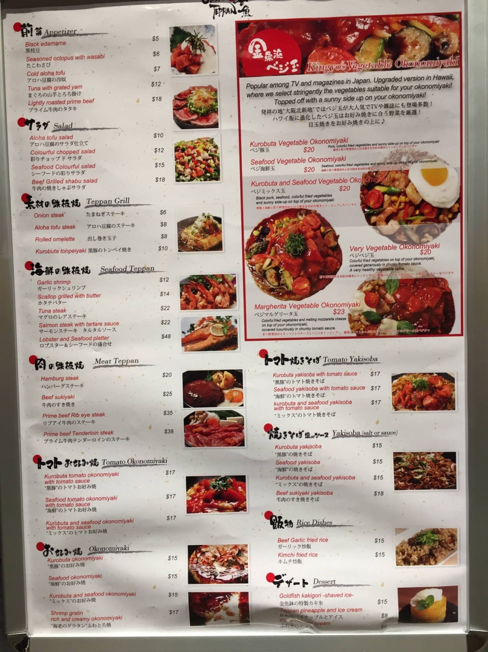 お値段はハワイ価格。18.8ドル?くらいしたかな?それに税もつくので、そこそこのお値段です。ハワイ価格だからしょうがないですが、日本じゃ食べないっしょ‼︎