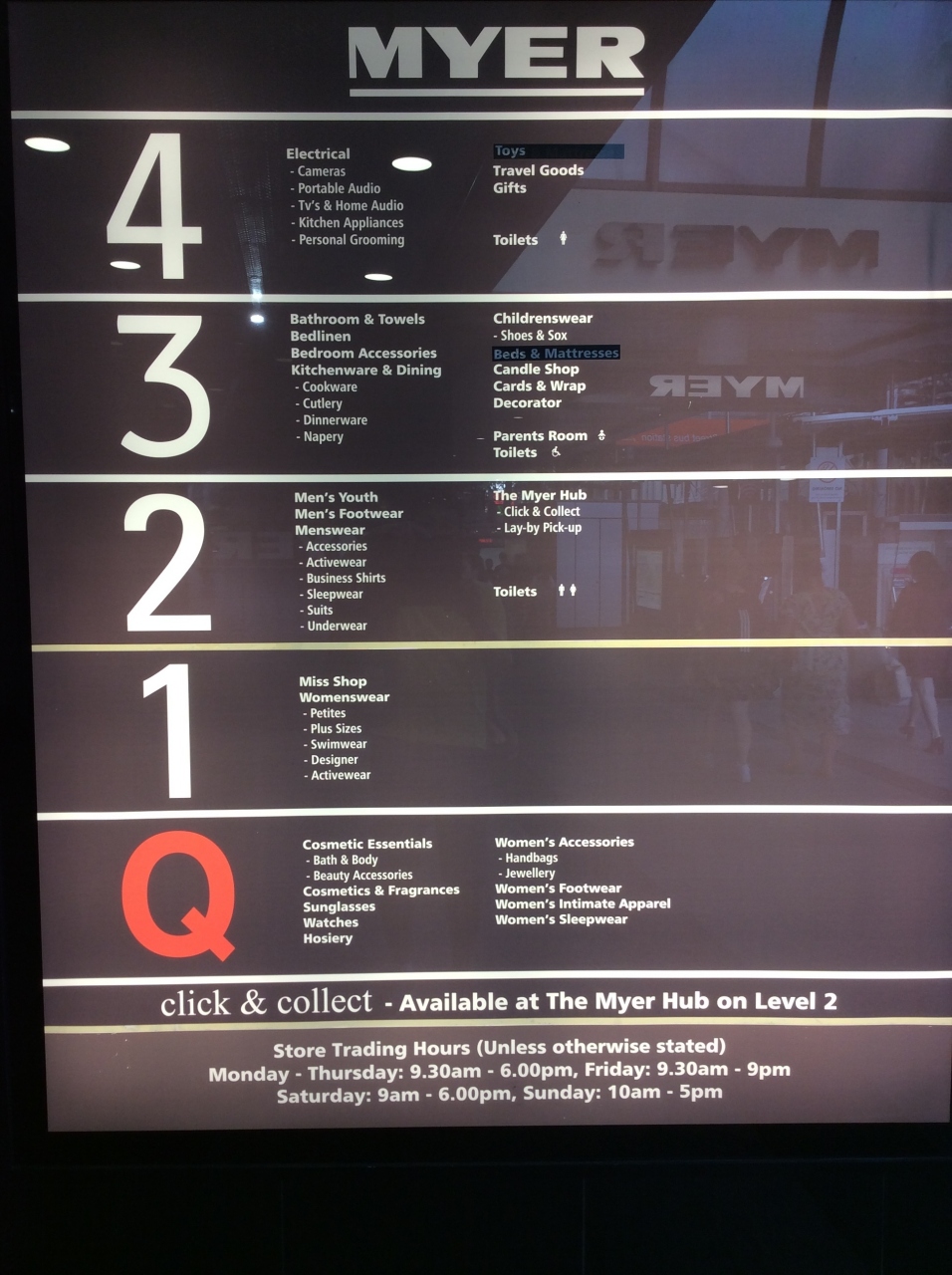 クィーン・ストリート・モール側の正面入口、左脇には~