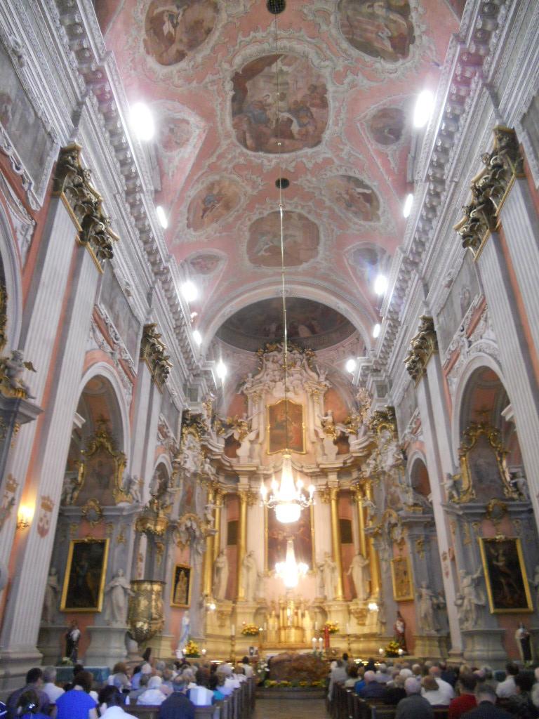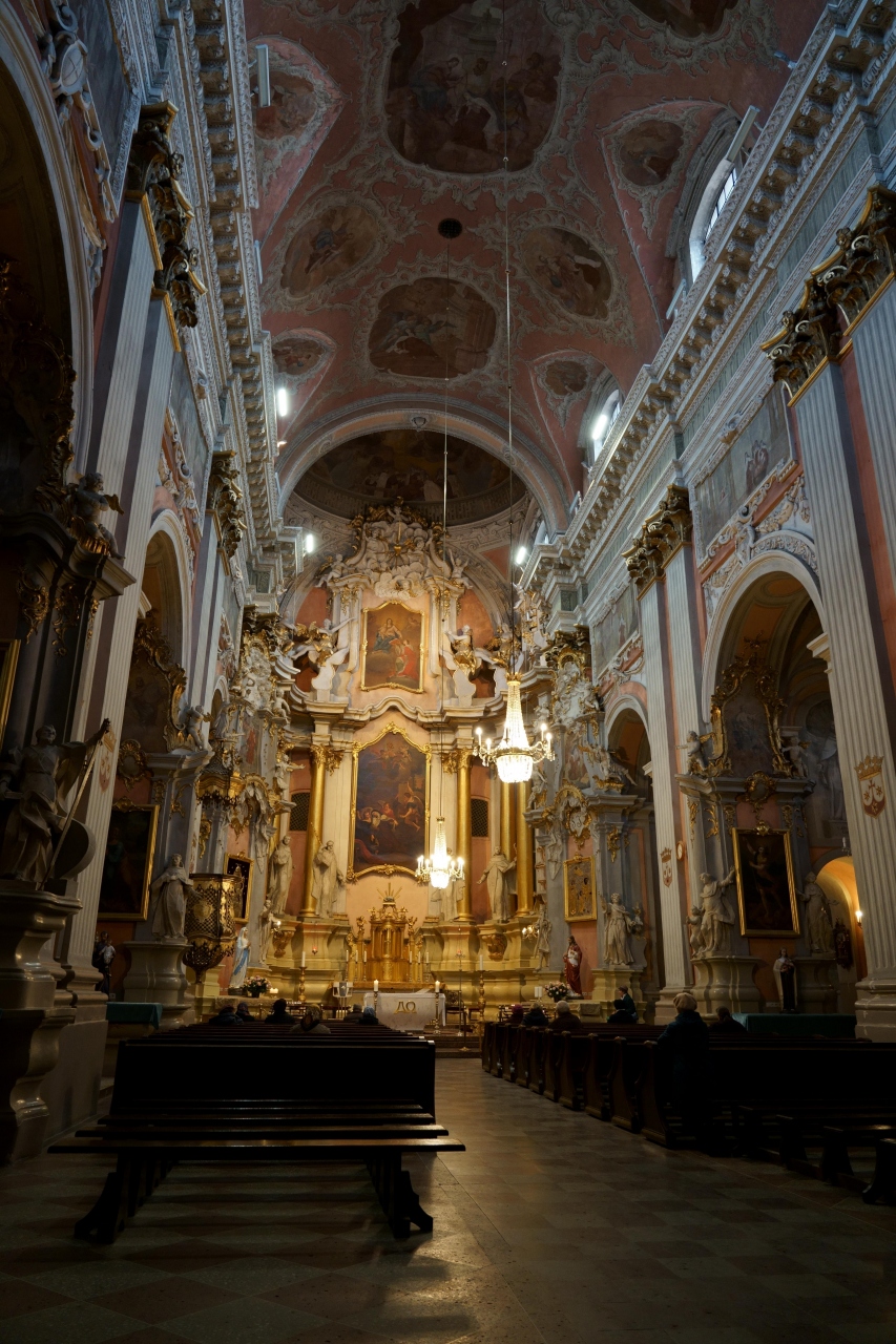 1630ー1655年にかけて夜明けの門のすぐ近くに建てられた聖テレサ教会は、 リトアニアの初期のバロック様式の建物のひと... 続きを読むつです。 教会の門には黒の大理石が使われていて、ファサードにはスウェーデンの砂岩が使われています。 朝早くからオープンしているので教会内に入ったところ、 熱心にお祈りしている方が数人いたので、静かに見学しました。 祭壇や天井画が美しく見入ってしましました。 午後にもう一度訪れた時もミサ中でしたが、教会内は明るく壁画などが良く見えました。 閉じる