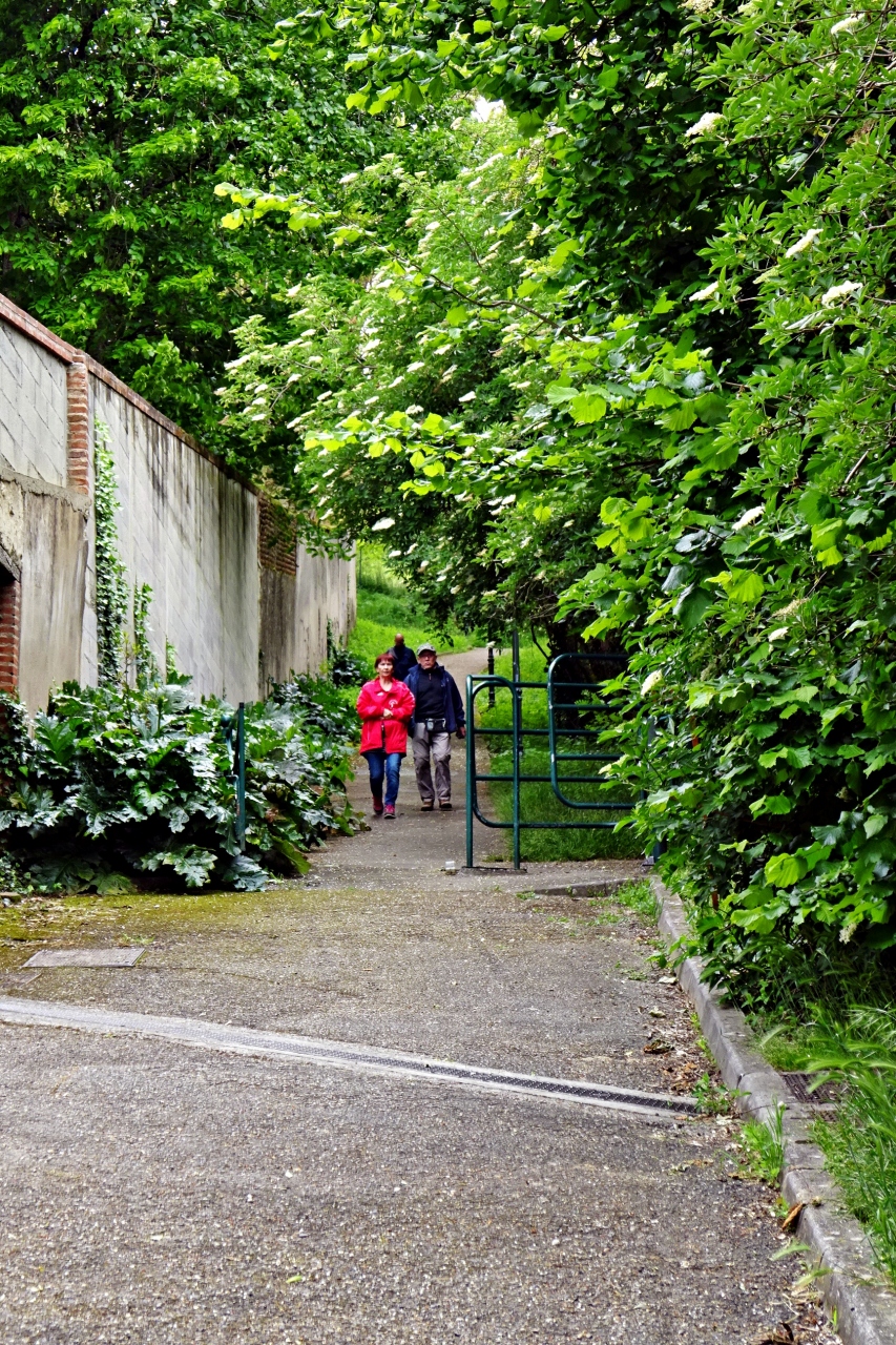 小高い丘の上の展望台(Google Mapによると128m)からモワサックを見渡した後は、モワサックのカナル(運河)を渡って、タルン川沿いのプロムナードまで散策してみました。