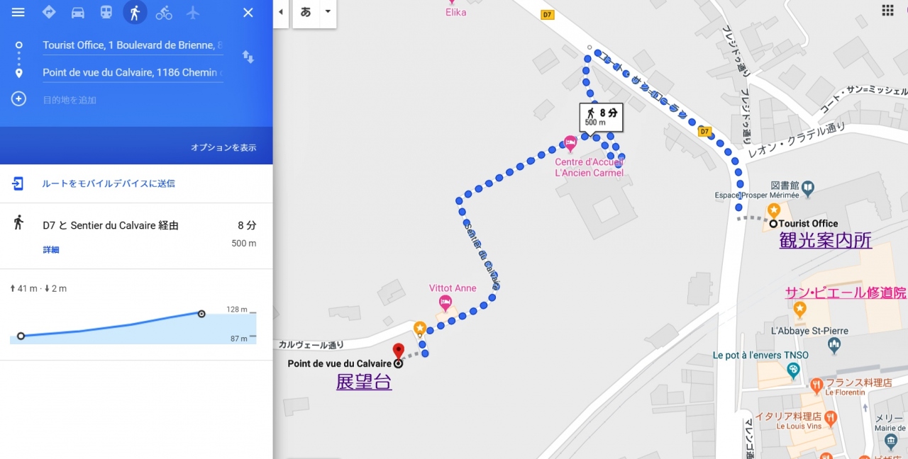 当日、結局、 サン・ピエール修道院教会をたっぷり2時間半(16時半位まで)見学し、その後、観光案内所へ行って聞いてみると、「ここから大体歩いて15分位」とのこと。 調べていたとおりだったので、歩いて行ってみることにしました。