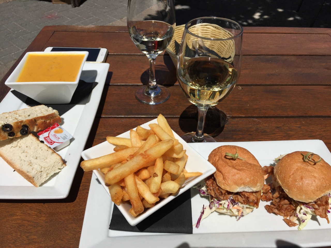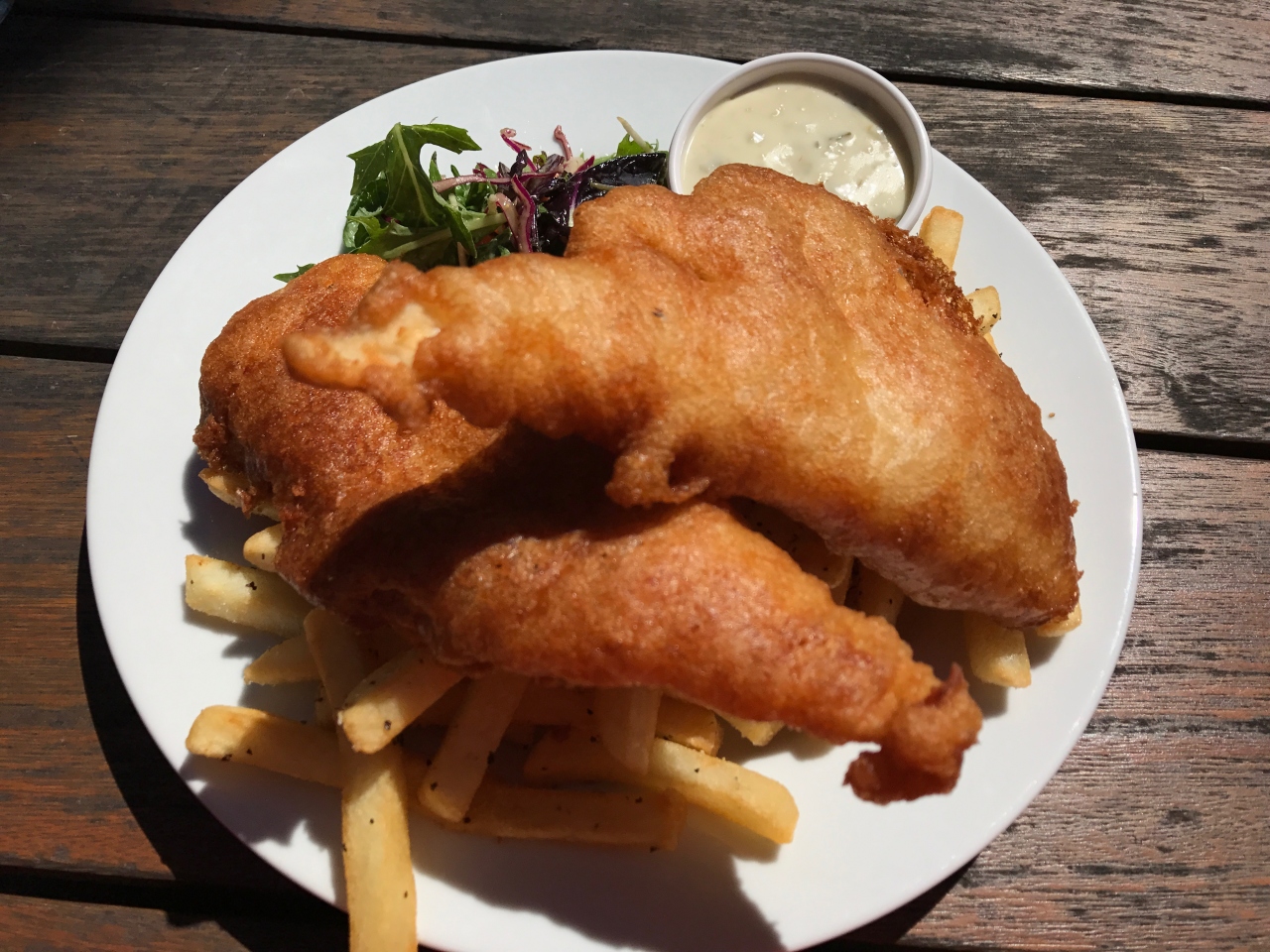 昼なら、バーガーとスープとか、フィッシュ&チップスで白ワインを飲みながら湖や道ゆく人たちを眺めるのがいいです