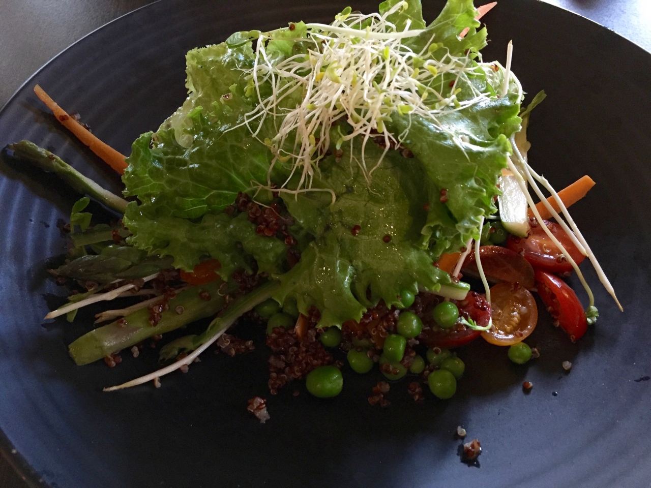 早めのディナーでしっかり食べた時は、ミックスサラダは新鮮で、サーモンとグリーンピースはソースもとても美味しく、ビーフも柔らかく焼き具合も絶妙でした