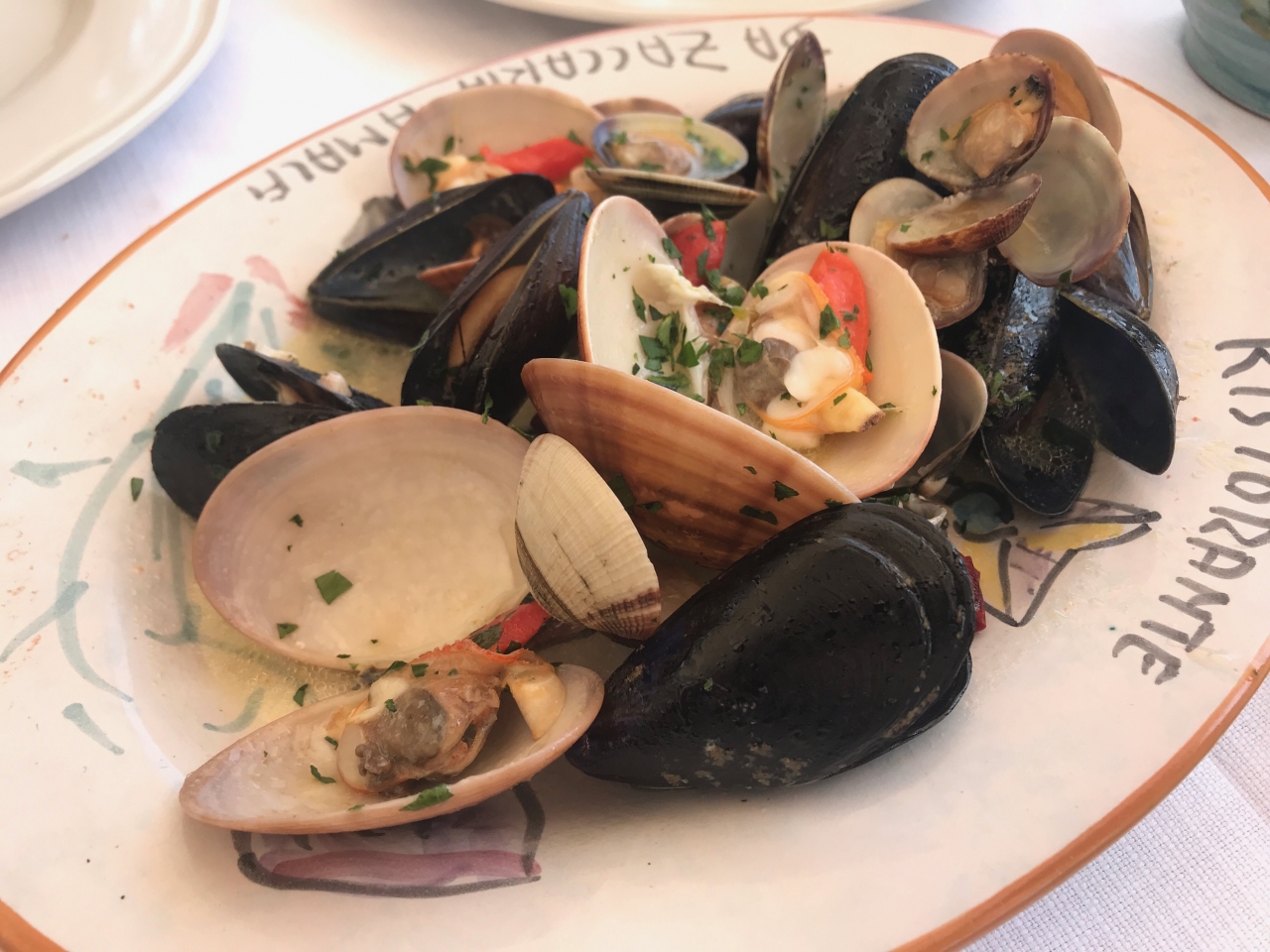 シーフードが売りなので、ムール貝とアサリのワイン蒸しはガーリックも効いていて美味しかったです