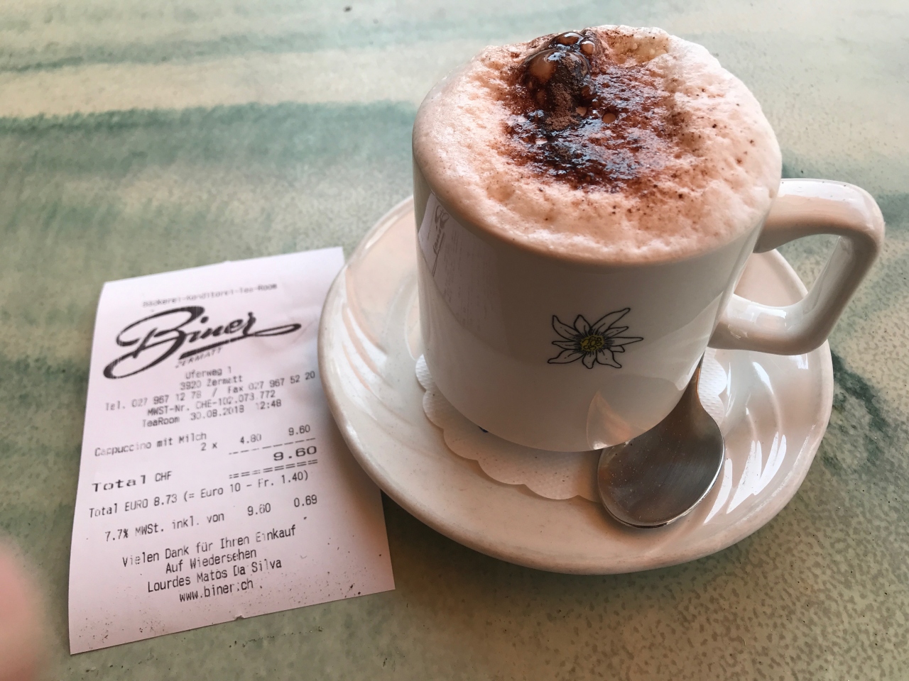 外の川沿いのテラス席からはマッターホルンも見えて、天気の日は気分がいいです