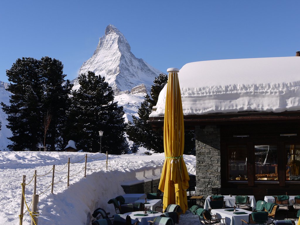 お天気が良い日に、マッターホルンを眺めながらテラス席でランチタイムを取るのは至福のときでした
