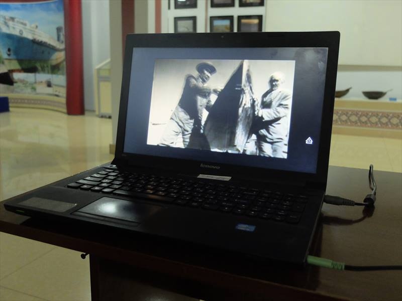 船の墓場のすぐ近くに建つ小さな博物館。往年の姿を映した映像資料(たぶんロシア語)も見られる