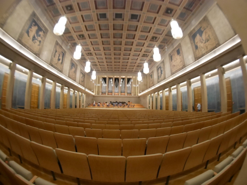 期待していた音響は、よい響きだが一聴して感じたのは、木をふんだんに使ったブレーメンのGLOCKEやウィーン楽友協会ほど温もりある響きではなく、やや硬質な響きである。その分、楽器の音色を楽しめる自然な残響とも言える。録音にも適しているだろうし、自分好みであり、とても気に入った。
