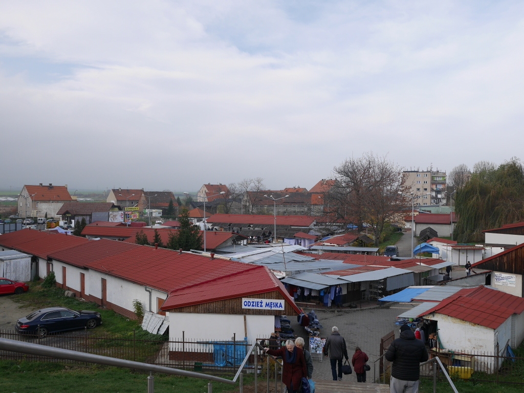 そして、高台から眺めると、足下にとても大きな市(Targowisko Miejskie w Jaworze)がたっている。ヤヴォルの町はドレスデンとブレスラウ間やレグニツァ-プラハ間の交易路にあり、それ故に栄えたらしいから、この市場も相当な歴史があるのだろう。