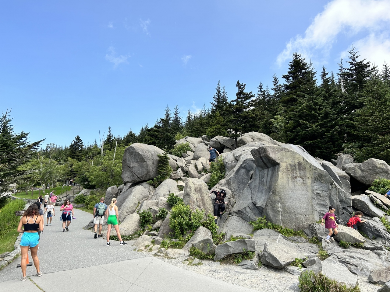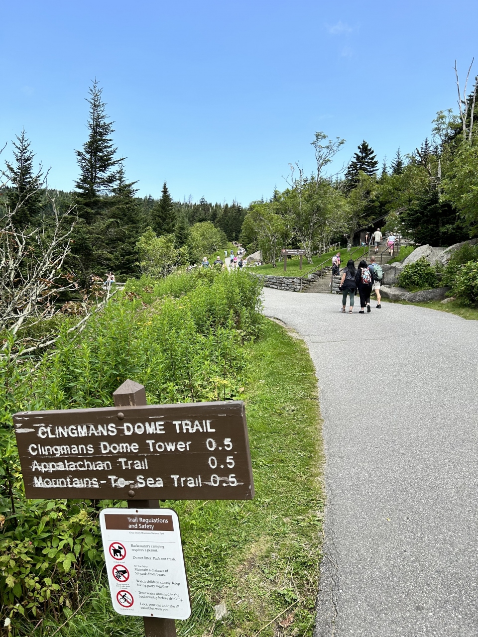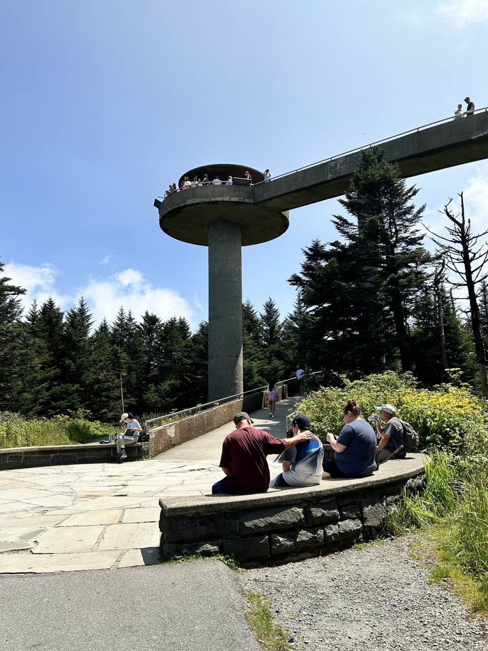 グレート・スモーキー・マウンテンズ国立公園の最高点であり展望台があります。週末だけに駐車場は渋滞してましたが、運良く並んで... 続きを読むいたところの駐車枠が空いたので滑り込み。駐車場から徒歩で展望台に向かいます...というか、ドームまでは0.5マイル(800m)のちょっとしたトレイル。道は整備されて歩きやすいです。が、地味に長い上り坂が続き、お年寄りの方はちょっとつらそう。ゆっくり上るご年配の方もちらほら見かけました。「ドーム」は半円状の山頂のことで、標高2,025 mの山頂に建つ展望台からはアパラチア山脈の中のブルー・リッジ山脈にあたる頂上が見渡せてよい景色。グレート・スモーキーという公園の名前は、あたり一帯をしばしば覆うブルーグレイの霞に由来しているそうです。 閉じる