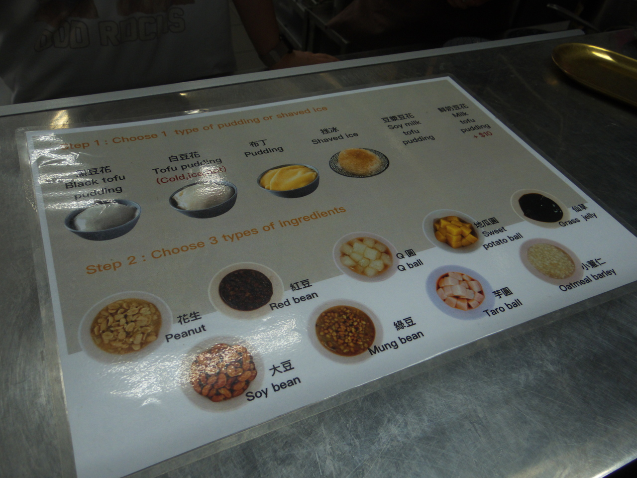 豆花は白豆花と黒豆花が選べますが、プリンなどもあるみたいです。