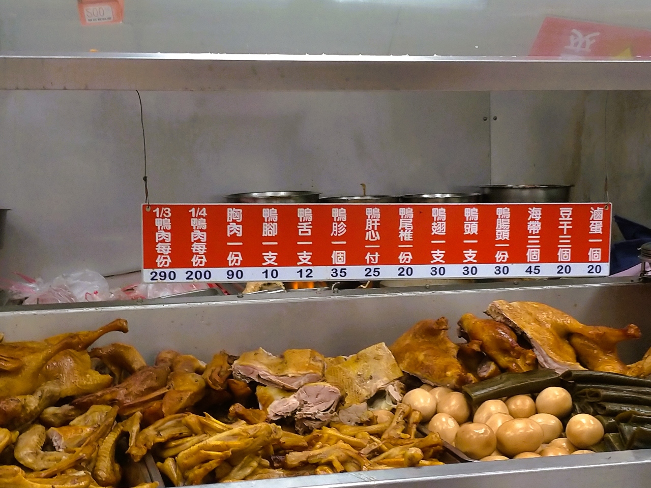 台湾瓶ビールは奥の冷蔵庫から自分で持っていって、店内中央の支払い台へ見せれば何とかなった。麺が多くておなかがいっぱいになってしまってからあたりを見渡すと、鴨肉がたくさん置いてある。注文票にはないのに、と思っていたのだけれど、どうやら口頭注文の仕組みらしい。ちょっとそれはハードルが高かった。