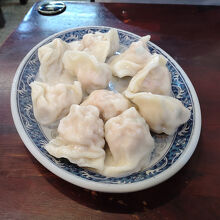 水餃子は最低10個単位で、豚肉、海老水餃子を頼みました。