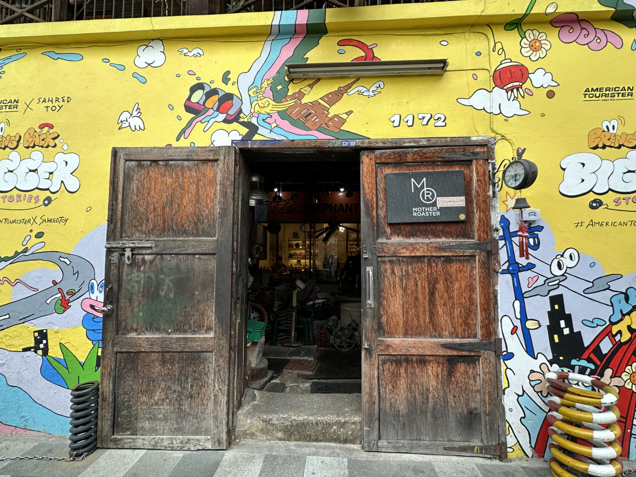 そんなタラートノイ地区に、足を踏み入れたすぐのところに、真っ黄色に塗られ、その上にカラフルでサイケな絵がたくさん描かれた旧家があり、その2階がこの「マザーロースター」である。