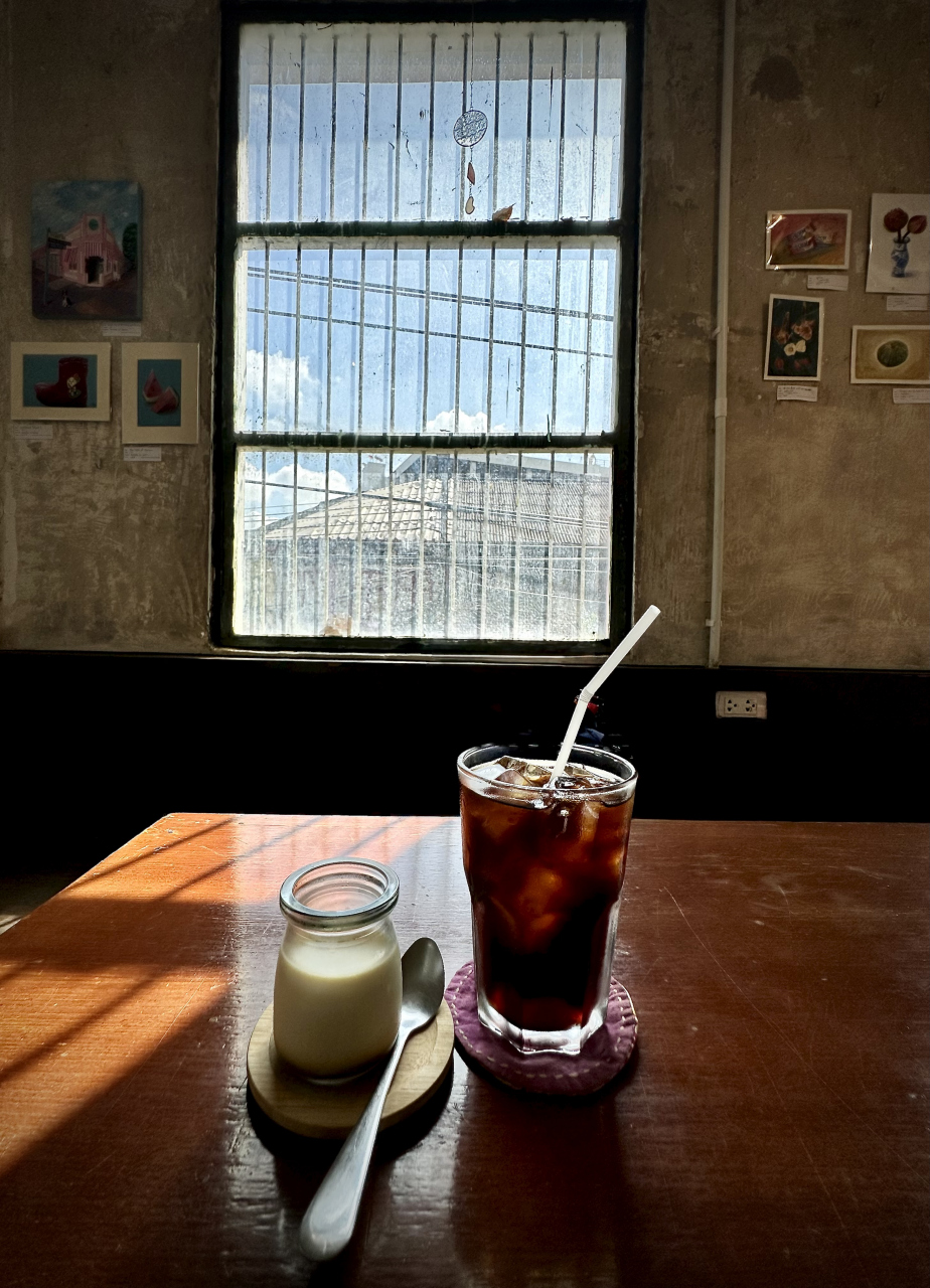 写真でみると、一階だけの席数も少ない小さなお店のイメージではあったが、二階にもテーブルがあり、時間帯によっては(まだソンワット通り自体が混む前は)ゆっくりと美味しいコーヒーと食事が頂ける感じ。