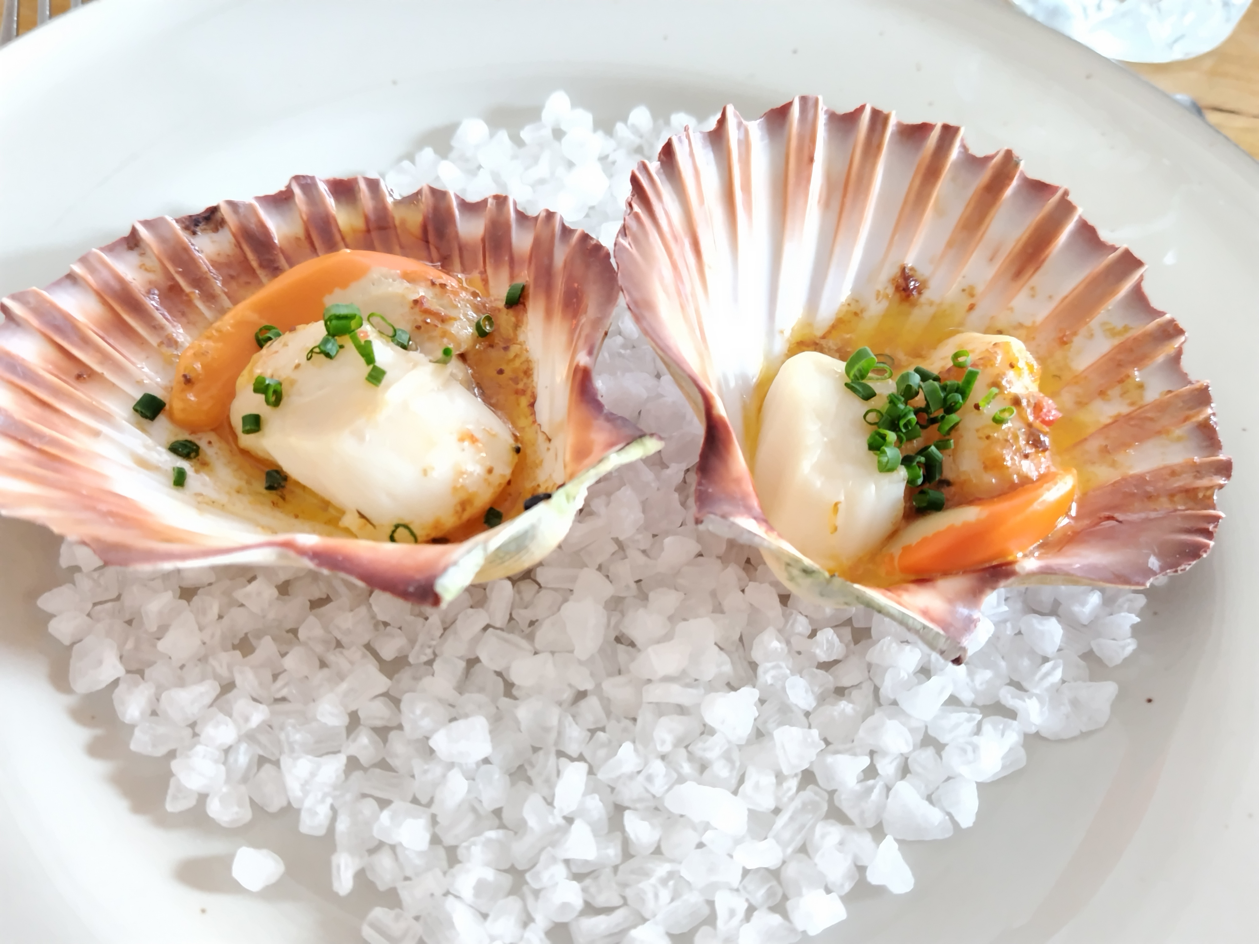 オーダーしたのは、炙りホタテの岩塩添えとキングジョージホワイティという魚のグリル。