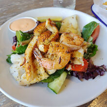 先に野菜が食べたかったのでまず海鮮サラダ!エビ、イカうまっ!野菜うまっ!!