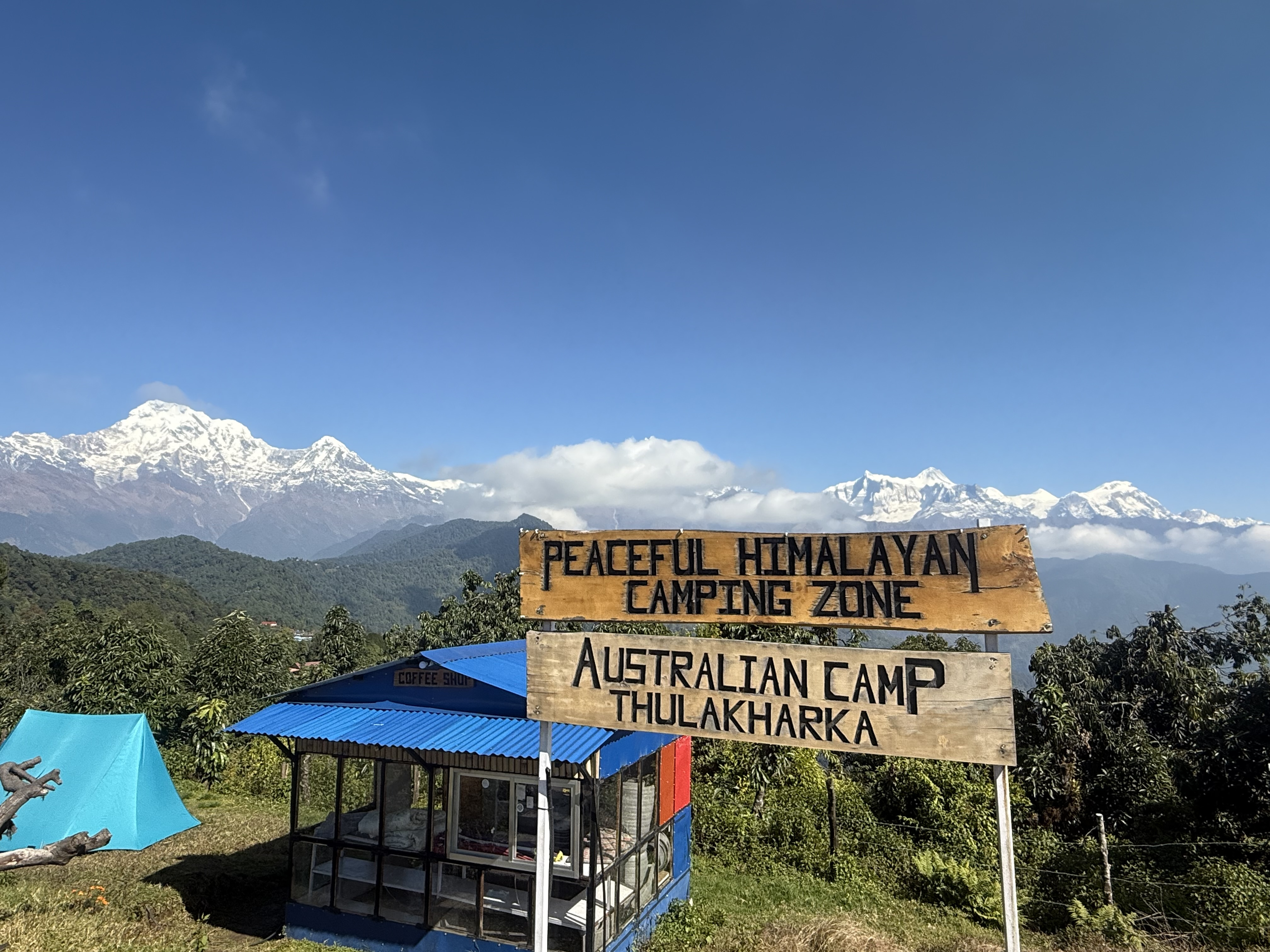 車でカンデまで行ってここからスタートします。ロッジやお店もあるので食事やお茶を飲むこともできます。オーストラリアン・キャンプまでは1時間10分くらい歩くと着きます。そこからはアンナプルナ、マチャプチャレなどの素晴らしい眺めが見られます。