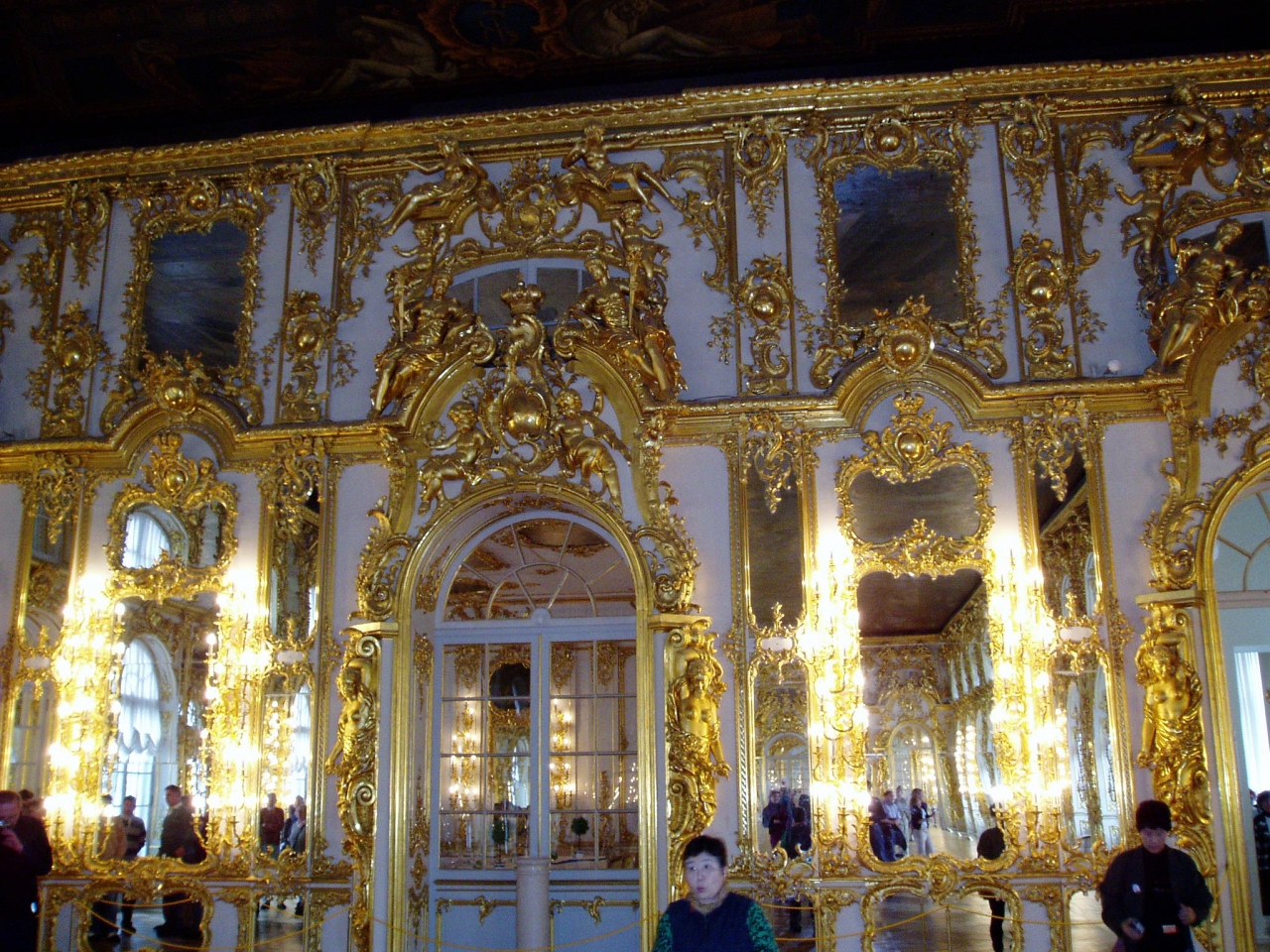 エカテリーナ宮殿見学の際には手荷物は小さくする必要があります。リュックは持込禁止。コートも着用不可。クロークに預けてから入る事になります。前のグループの人々が、クロークに預けるのが面倒だったらしく、腰にコートを巻きつけて入ろうとしたら係員に止められ、もめていました。ここに限らない様ですが、大きな荷物は全てクローク預けにするというのが基本の様子です。