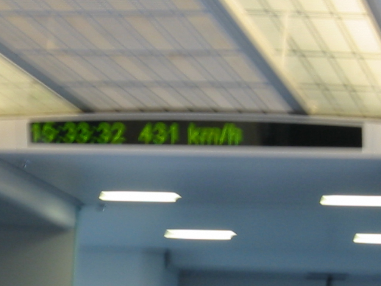 浦東空港と地下鉄2号線の龍陽路駅を結んでいます。33KMを8分で走ります。めちゃめちゃ速くて感動しました(最高速度は431キロだそうです)。車内は結構ゆれて、写真がぶれてしまいました(^^ゞ。