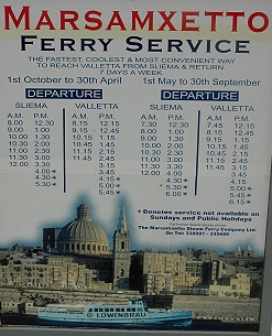 右側の時刻表は5月1日から9月30日までのヴァレッタ、スリーマの各出航時刻、