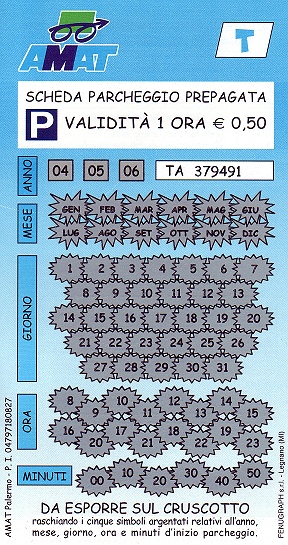 パレルモ全域がこうなのかまでは分かりませんが、パレルモ中央駅近くの路上駐車場に駐車した時のチケットの買い方と使い方をご紹介します。