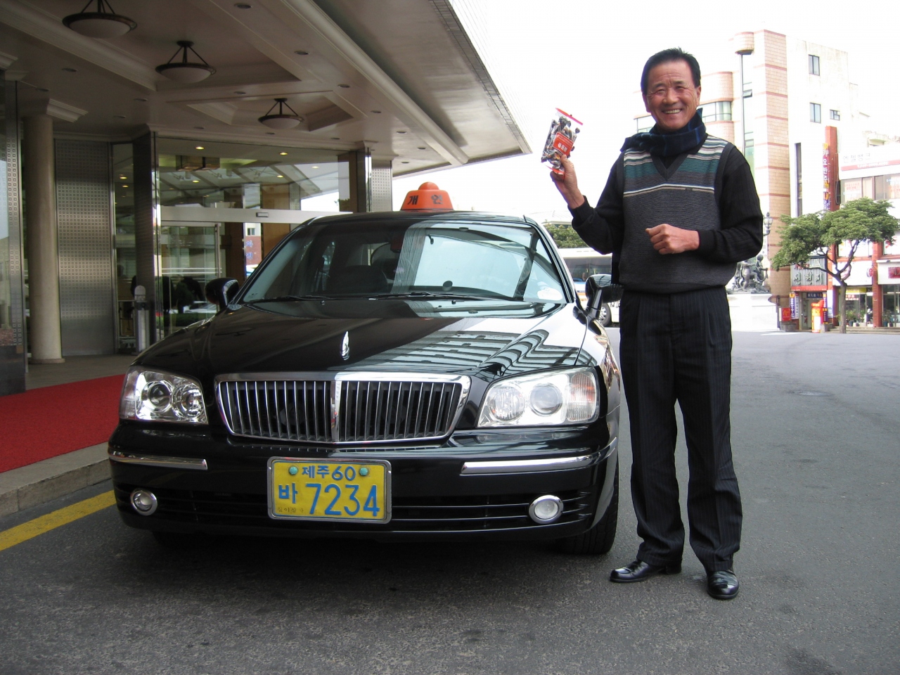 チュジュ島の移動はタクシーになります。ただ観光では日本語が通じるかが大問題。ホテル職員から紹介された金石山(キムソクサン)氏は良かったです。6時間で8万W。8時間で10万W程度のようです。(ただ昼食代程度のチップは礼儀でしょうが・・)。