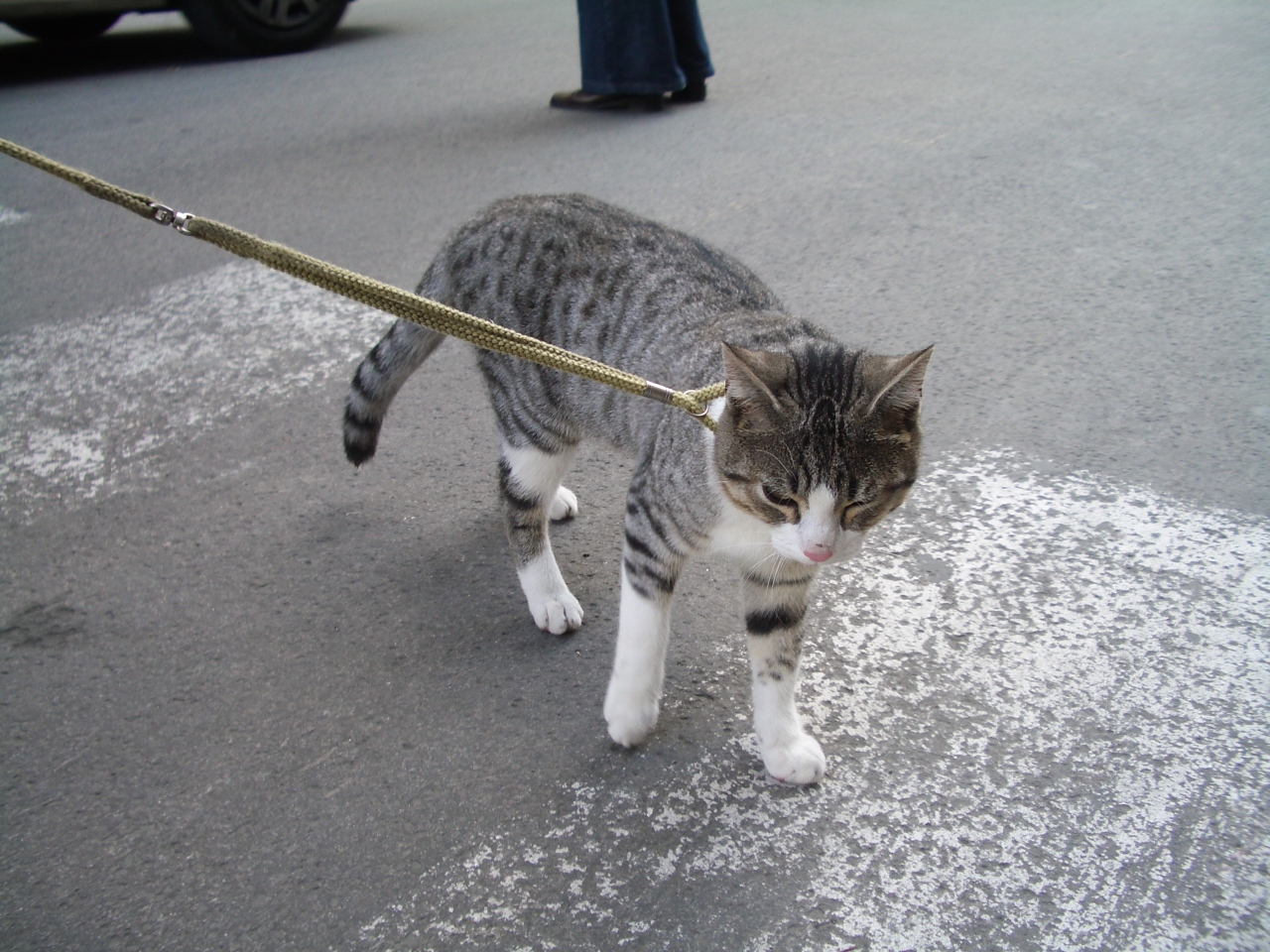 ピサの斜塔へ散歩に来ていたおじいさんが犬3匹と共につながれていたかわいい猫ちゃんです!ちょっとかわいそう!