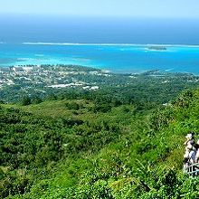 サイパン島のほぼ中にある473mのタポチョ山頂からの眺めは、お天気がよければ画像のように島の緑や海の青が眼下に広がります。