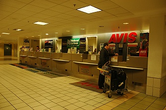 到着ロビーに出て左手に外資系の各社が並んでいます。(日系は右手のようです。)手続きが済むと、スタッフが到着ロビーの外まで運転してきてくれます。カウンターやインフォ・センターで地図をもらっておくのをお忘れなく。