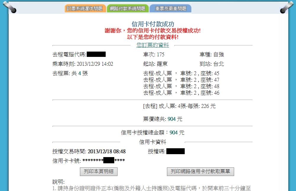 台鐵・自強號など、指定席インターネット予約とカード決済・発券
