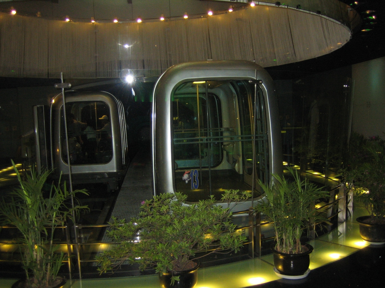 トンネル内では、6D音響システムに合わせて極彩色のイルミネーションが慌しく明滅しSFファンタジーの世界が広がった。(片道30元・往復40元)