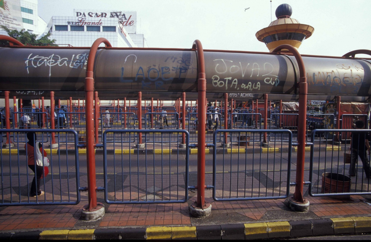 これはブロックで仕切られた専用レーンを走る大型の新バスで、目抜き道路ジャランタムリンを通ってブロックM~コタ駅を結んでいる。一律Rp 3500。