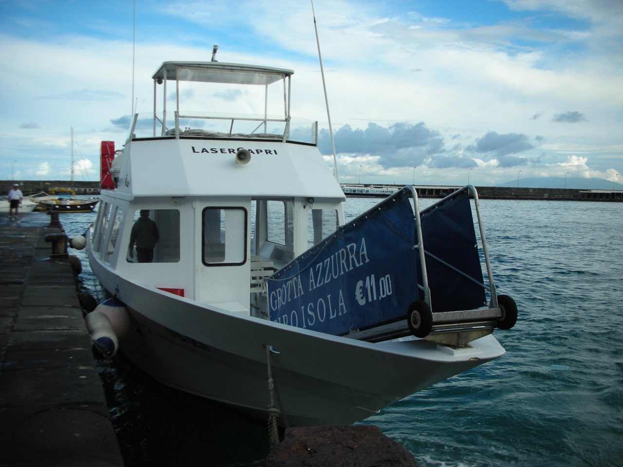 ・この、左へ行って右手にあるチケット売り場の船は2階建てでちょっと大きい分、ゆれが少なくって青の洞窟に行くにはこれがとってもお勧めなのです。