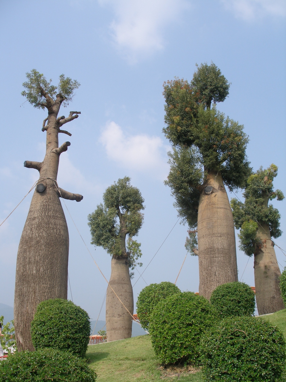 オーストラリアから送られてきたボトルツリー・なぜ?そんな名前かと言えば・枝の部分は上部にあり下部はなんと瓶のような形からそう呼ばれているようですが勿論その瓶の中に水を貯めることも出来るという便利な仕組み・・・しかし気温や色々な条件は果たしてこのボトルツリーを生かしていけるだろうか??開幕してまだ3週間すでに手前にあるボトルツリーの1本はかれだしているような気がします・・・・・