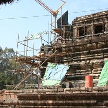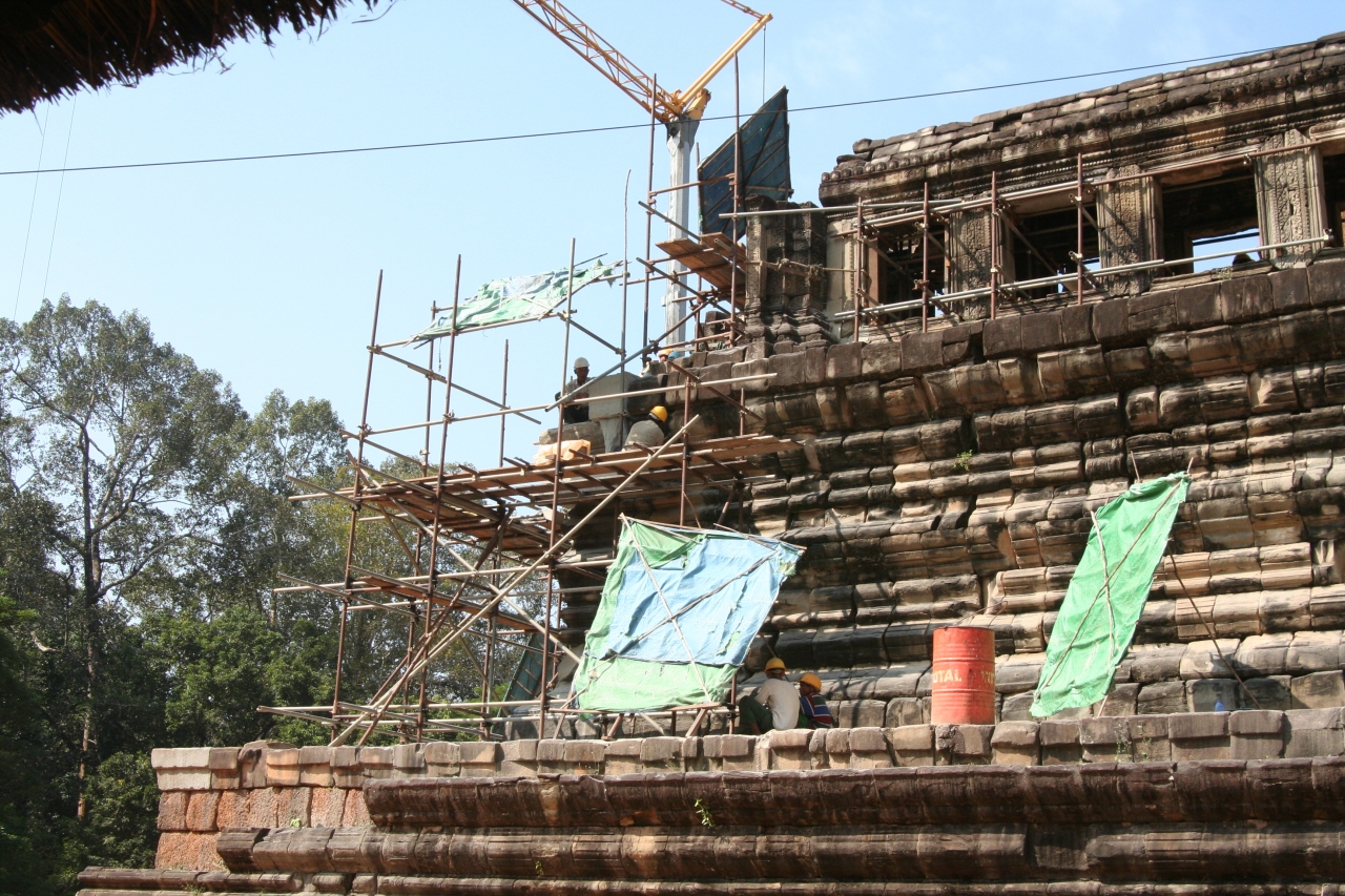 世界遺産の保護はかなりのお金がかかる?・でもここで珍しく修復中の遺跡にであう時間が掛かりそうな遣り方。。これは東南アジアどこの国でも同じなのかもしれない・・
