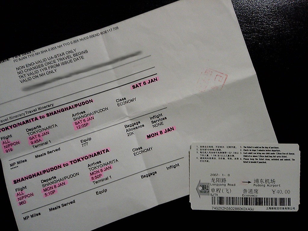 龍陽路駅の切符売場で提示したのは、航空会社から送られてきた電子メールをプリントアウトしたものでしたが、普通に割引運賃で発券されました。