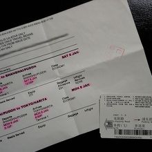 Eチケット控や搭乗券半券には「己購磁浮票」というスタンプが捺されました。
