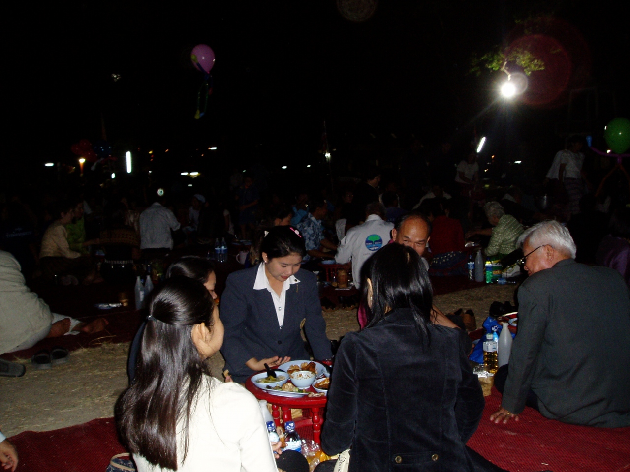 チェンマイのお寺は何処も一番偉いお坊様は市からの認可が無いとお寺の住職として代表する事を許されない大事なポストの交換式・・殆んどの人だ自分が生きている間に2―3度とはお会いできない儀式らしい、残念ながら昼間の交代儀式に行けなくて、写真が無いのが大変残念では在るが・・ピラミッドの形にした仏様に捧げる木で3角にくその中に今現在のお坊様と今日の朝まで其れを勤めたお坊様が入り儀式が行われる。伝統的な仕来りを何百年も守り通して来た儀式なので、参加したのはかなりの年代の方々であったらしい。夜は其れをお祝いするパーティーがあり、その名も古く昔の伝統を再現したカントークディナーである。・・・・・