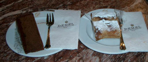ごぞんじデーメルのトルテです。一度は味わわないと。でも、おいしかった。観光客ばかりですが。客がおおくてウエートレスのサービスはイマイチ。最初にショウウインドウでケーキを選びます。