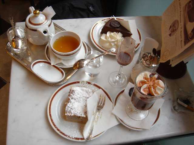 頼んだものは、O.Sacher-Torte(4.5€)Apfelstrudel(3.6€)Sacher-Kaffee(7.0€)Tea Darjeeline(3.5€)【レシートを見ながら】の計19.0€でした。