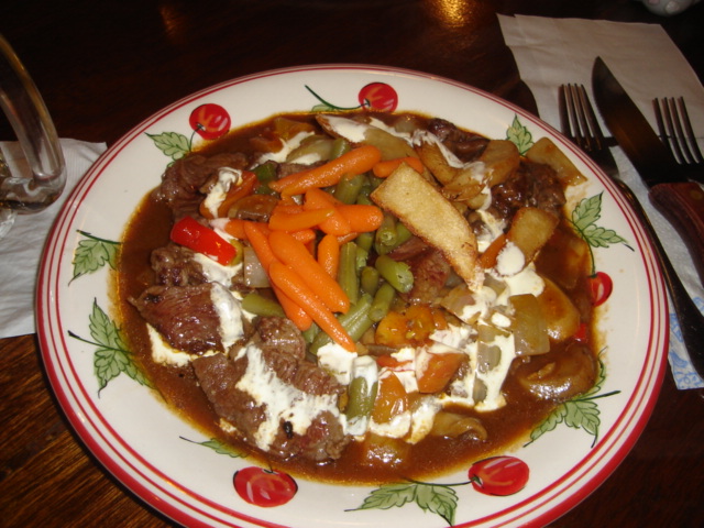 いつもはアンガス牛のステーキやハンバーグステーキのコースをオーダーするのですが、今回はちょっと食べ切る自信がなかったので、ビーフストロガノフとパンを単品でオーダーしてみました。