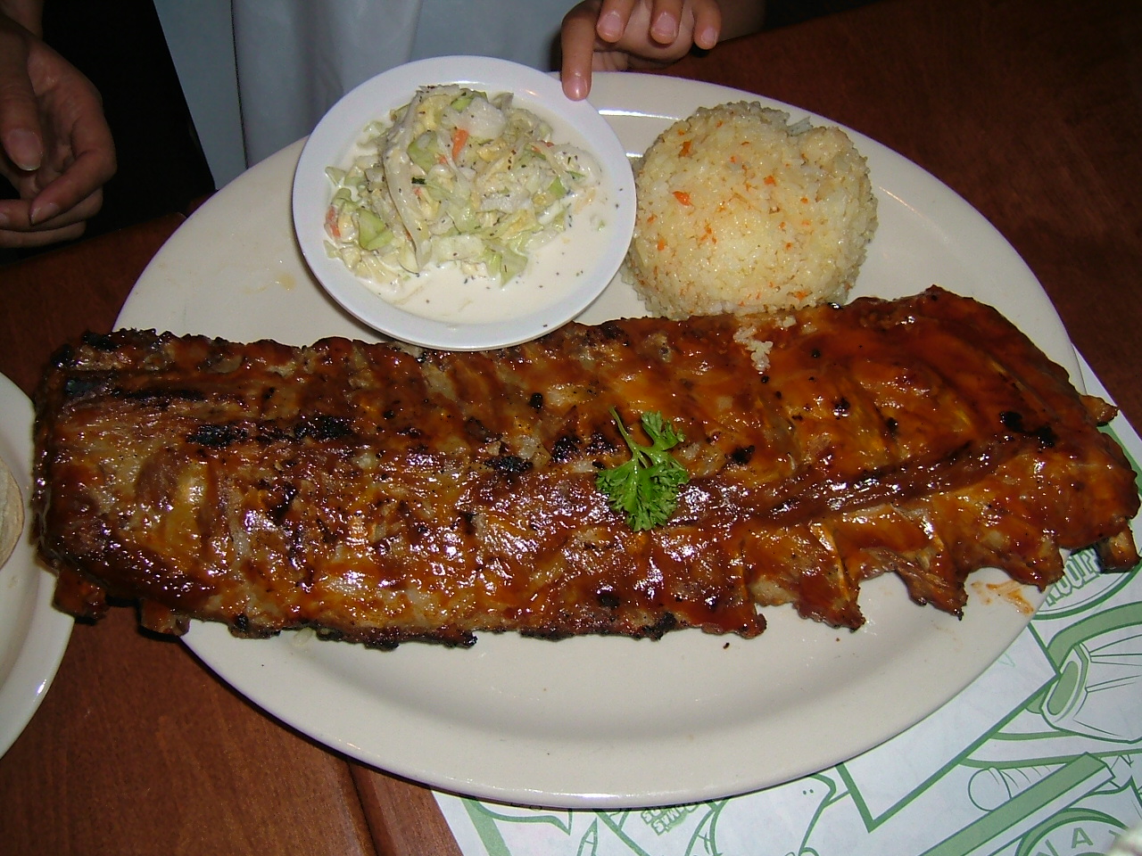 大人2人、3歳の息子が1匹だったので、注文内容は、ベイビーバックリブのフルサイズのみ(大きさはハーフ・レギュラー・フルと選べる)。これに付け合わせを2つ選べて、コールスローとフライドライスをチョイス。