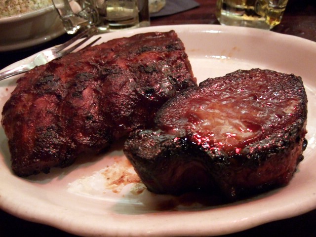 私は欲張って、リブ半分(写真左)とポークステーキ。これもボリューム満点です。今まであまりリブステーキは食べた事がなかったですが、確かにおいしいかも。