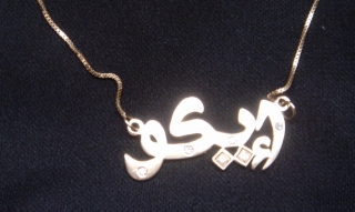 ゴールドスークでは、自分の名前をアラビア語で書いた