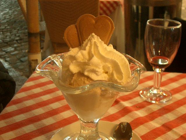 Tre Scalini でデザートにジェラートを頼みました。ちゃんとガラスのグラスに入って出てきました。でも請求書もみてびっくり。10ユーロとなっていました。ジェラテリーアで立って食べれば、2ユーロか2.70ユーロぐらいなのに。