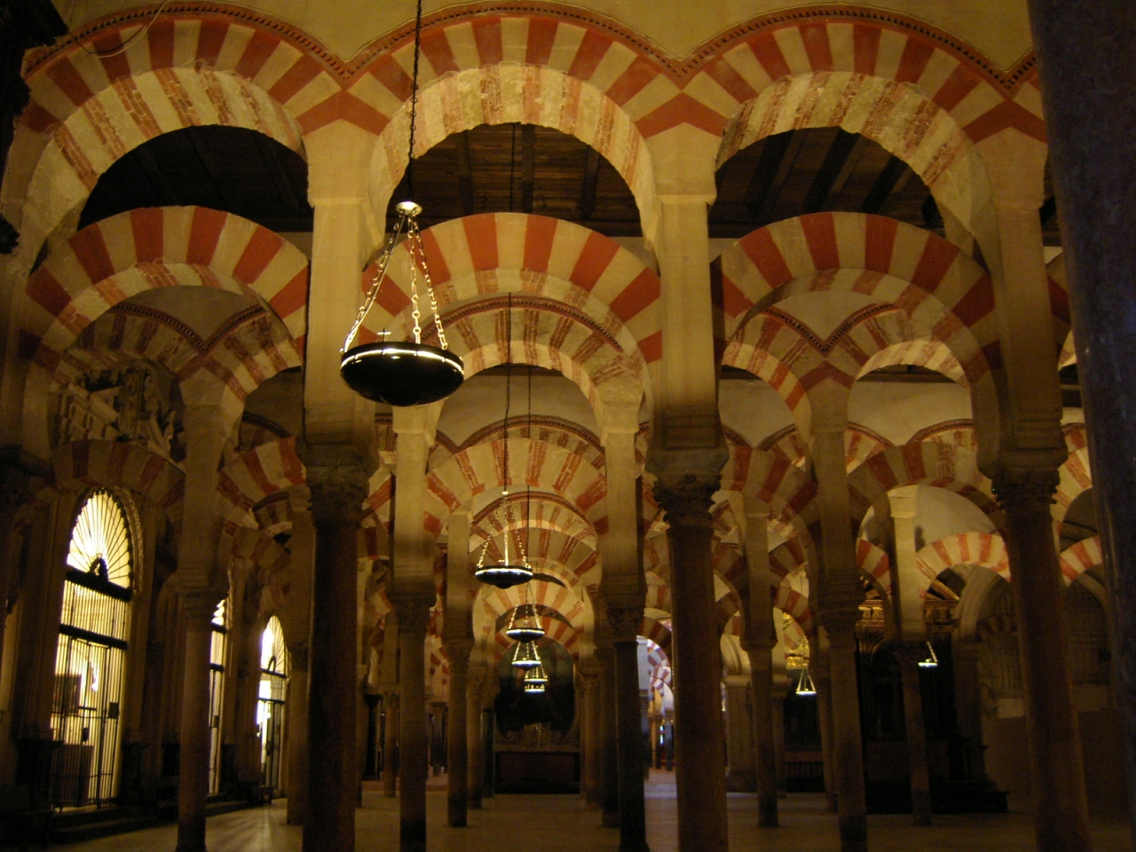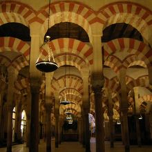馬蹄形の内部で有名なメスキータ。イスラム教のモスクと、その中にキリスト教の聖堂が混在する、大変珍しい建物です。
