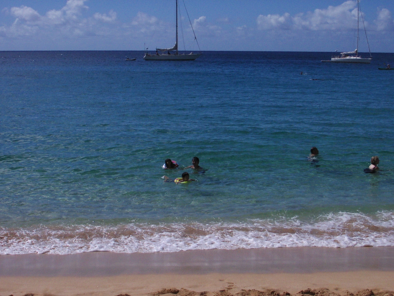 ハワイに短期滞在していた昨年の夏、知り合いのすすめで、オアフ島の北西に位置するワイメアビーチに行ってみました。あまり日本人観光客は行かないようですが、地元のマリンスポーツをする人やビーチでリラックスする人たちの間ではポピュラーのようです。ハナウマ湾のように浅い浜辺での大きな魚はあまり見られませんが、透明な水の中に小魚の群れを発見しました。すっごくキレイなビーチでした。