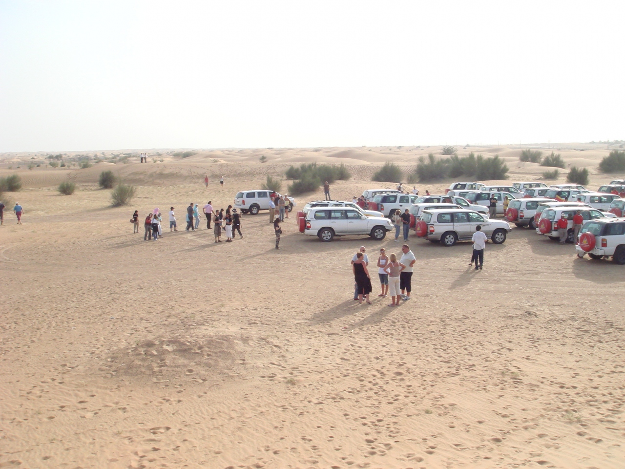 ドバイに行ったらやっぱり砂漠!という事でデザートサファリを体験しました。色々ツアーがある様ですが、私は‘アラビアンアドベンチャーズ’と言う会社のツアーを日本からHPで予約して行きました。季節によって料金が違う様で、4月は日本円で一人\10000弱でした。ホテルまで送迎付、デザートサファリを約1時間、ラクダと戯れ、砂漠の美しい日没を観賞、砂漠の中のキャンプで夕食、飲み放題、ヘナペインティング、水タバコ、ベリーダンス観賞と6時間程のツアー、アラビア体験盛りだくさんでなかなかお徳です。デザートサファリは思ったより激しくはないですが、車酔いする人は酔い止めを飲む事をお勧めします。300人ぐらいのツアーであまり日本人はいませんでした。夕食も大きなテーブルでみんなで食べるのでお酒を飲んで陽気になった外国人とコミュニケーションをとれれば楽しさも倍増!!