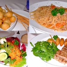 パスタ、ステーキ、サラダ共にとても美味しい。